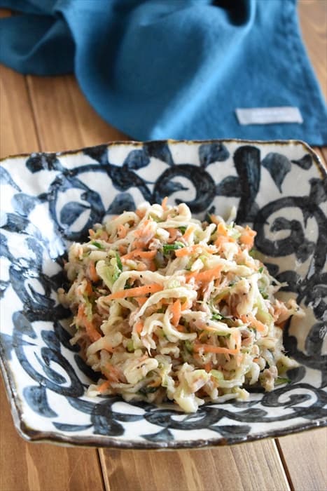 レンジで簡単!さっぱりヘルシーであと一品♪彩り抜群♡お酒にも合う!『イカとキャベツのマヨサラダ』