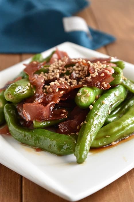 ご飯がすすむ!ししとうとベーコンの甘辛炒め